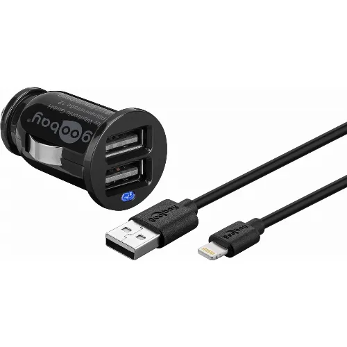 Goobay Apple Lightning billadare (12 W) Adapter för billaddare och Apple Lightning-kabel 1,0 m (svart)