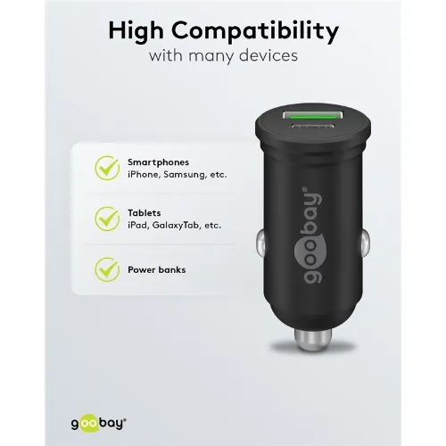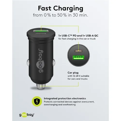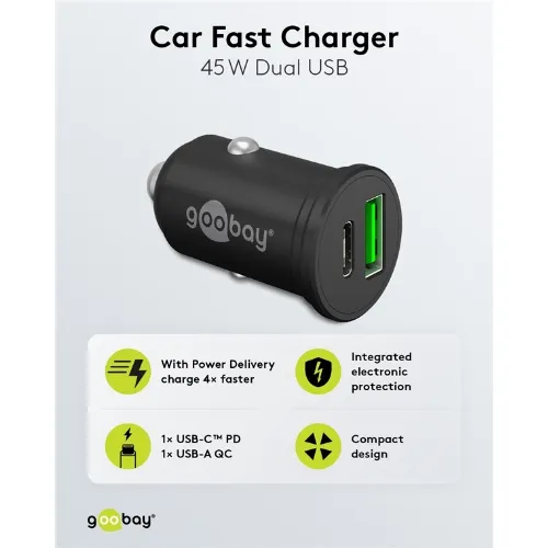 Goobay Dubbel USB-billadare USB-C™ PD (Power Delivery) (45 W) 45 W (12/24 V), lämplig för enheter med USB-C™ (Power Delivery), t.ex. iPhone 12