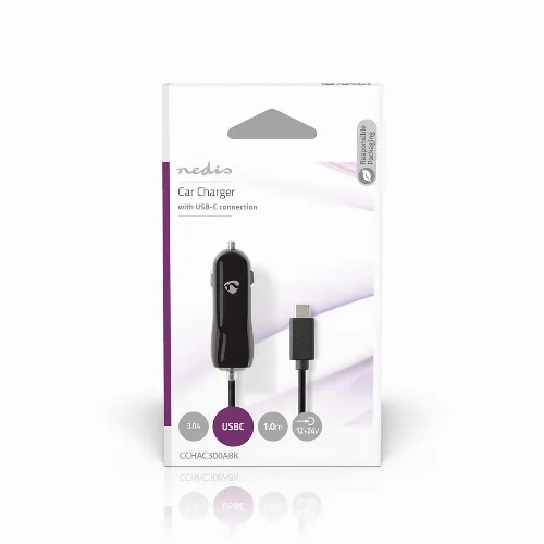 Nedis Autolaturi | 15 W | 1x 3.0 A | Lähtöliitäntöjen määrä: 1 | USB-C™ (kiinteä) Kaapeli | 1.00 m | Single Voltage Output
