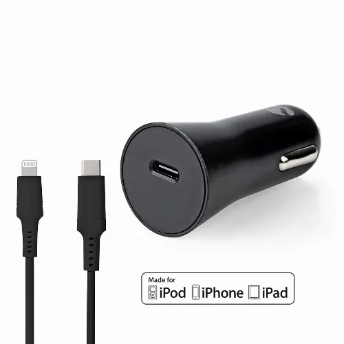 Nedis Autolaturi | 20 W | 1.67 / 2.22 / 3.0 A | Lähtöliitäntöjen määrä: 1 | Portin tyyppi: USB-C™ | Lightning 8-Pin (irrallinen) Kaapeli | 1.00 m | Automaattinen Jännitteen Valinta