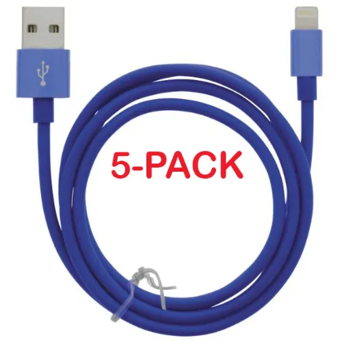 5-pack kaapeli USB-A - Lightning 2.4A, 1m, sininen