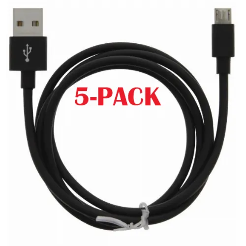 5-PACK kaapeli USB-A - MicroUSB 2.4A, 1m, musta