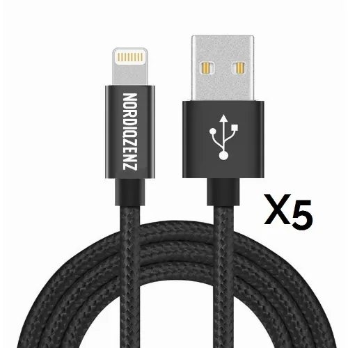 5-pack NORDIQZENZ Lightning tekstiilikaapeli, 1m, musta