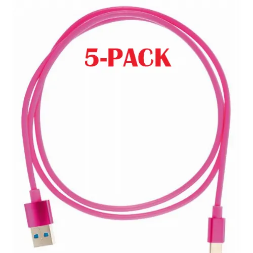 5-PAKKAUS USB-A - USB-C 2.4A, 1m, vaaleanpunainen 5-PAKKAUS USB-A - USB-C 2.4A, 1m, vaaleanpunainen