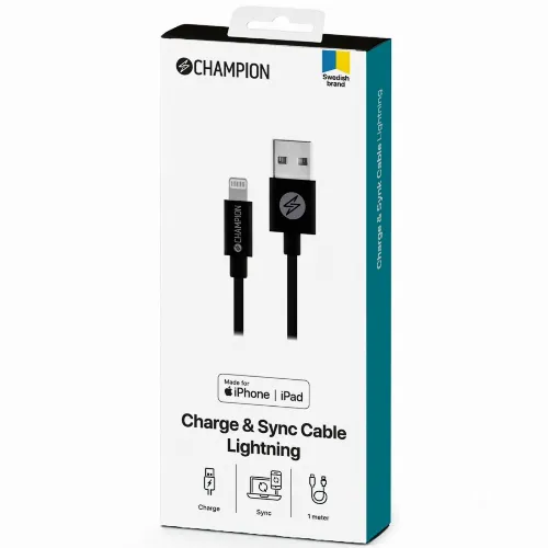 Champion USB-A Lightning-kaapeli 1m musta