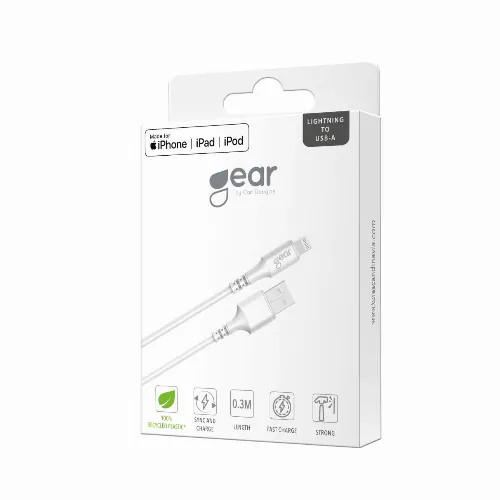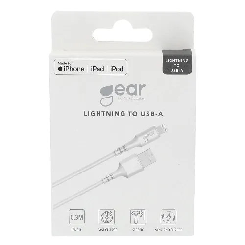 Gear Pyöreä latauskaapeli Lightning-USB-A:lle 0,3 m Valkoinen MFI