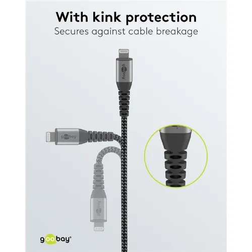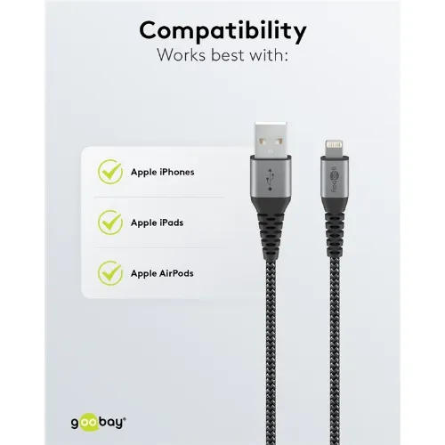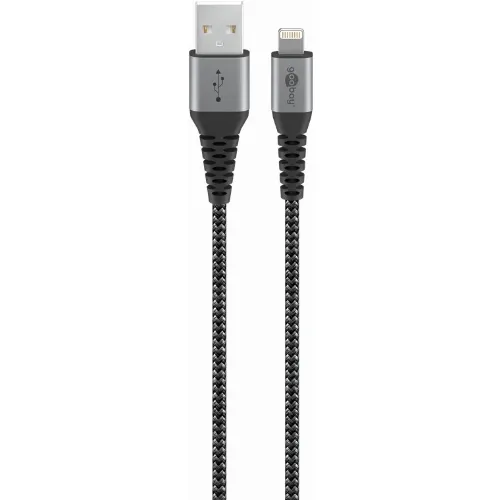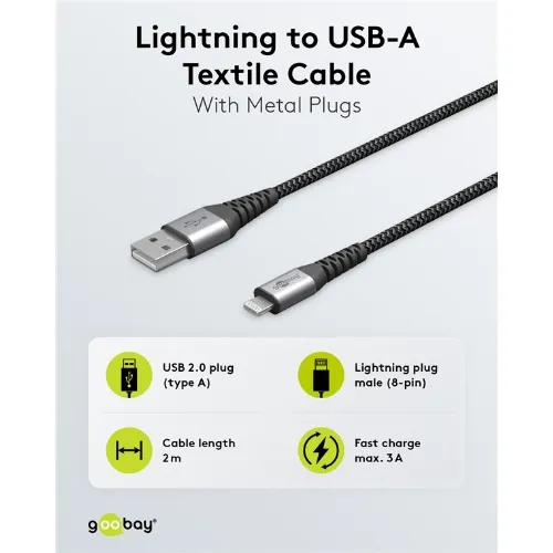 Goobay Lightning till USB-A-textilkabel med metallpluggar 2 m elegant och extra robust anslutningskabel för t.ex. Apple iPhone, iPad (Apple MFi certifierad)