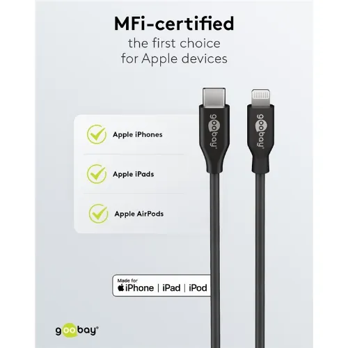 Goobay Lightning till USB-C™ laddnings- och synkroniseringskabel, 2 m, svart MFi-kabel för Apple iPhone/iPad