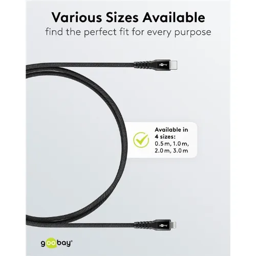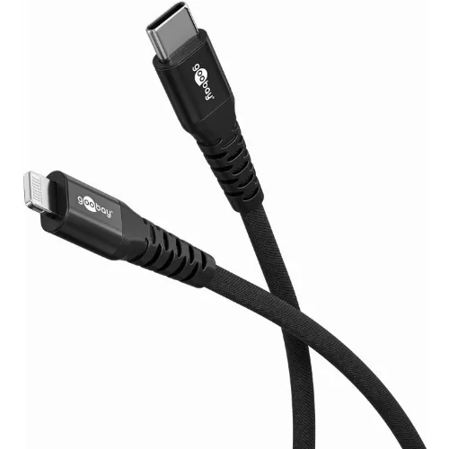 Goobay Lightning-USB-C™ supersoft textilkabel med metallkontakter, 0,5 m, svart MFi-certifierad, elegant och extra robust laddnings- och synkroniseringskabel för Apple iPhone/iPad (svart)