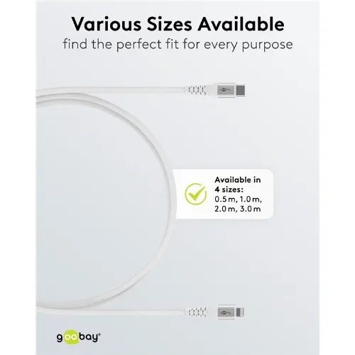 Goobay Lightning-USB-C™ supersoft textilkabel med metallkontakter, 2 m, vit MFi-certifierad, elegant och extra robust laddnings- och synkroniseringskabel för Apple iPhone/iPad (vit)