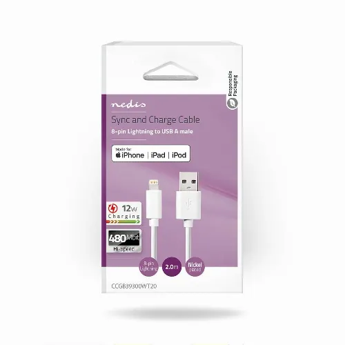 Nedis Lightning Kaapeli | USB 2.0 | Apple Lightning 8-Pin | USB-A Uros | 480 Mbps | Niklattu | 2.00 m | Pyöreä | PVC | Valkoinen | Laatikko
