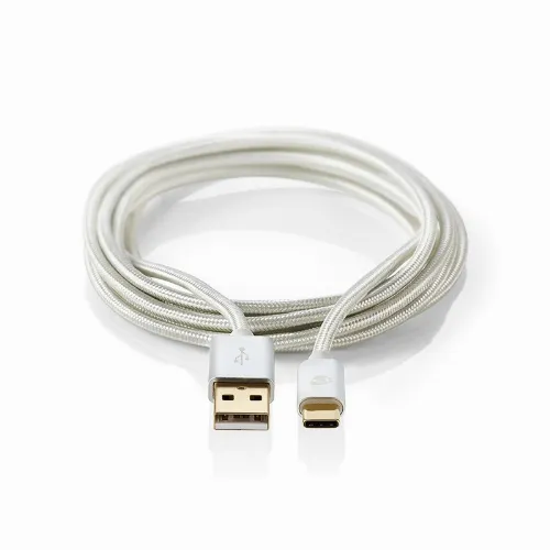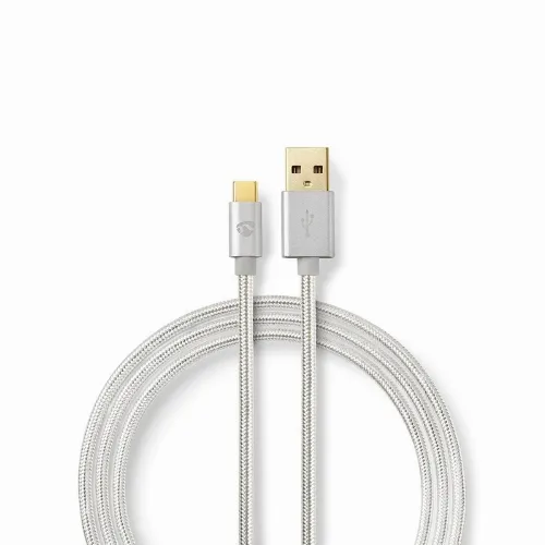 Nedis USB kaapeli | USB 2.0 | USB-A Uros | USB-C™ Uros | 15 W | 480 Mbps | Kullattu | 2.00 m | Pyöreä | Nailon / Punottu | Alumiini | Laatikko kannella ja ikkunalla