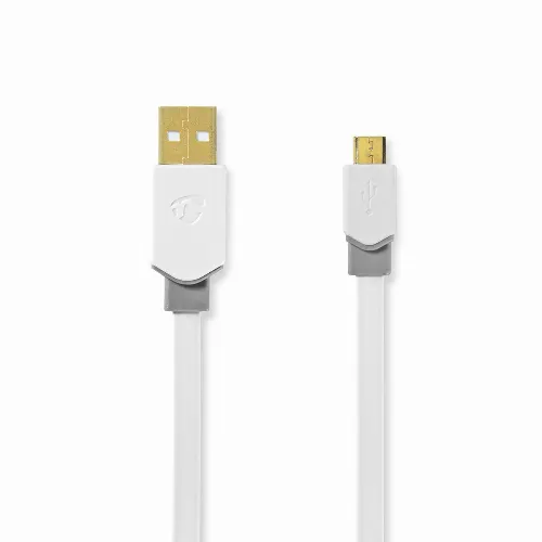 Nedis USB kaapeli | USB 2.0 | USB-A Uros | USB Micro-B Uros | 480 Mbps | Kullattu | 1.00 m | Litteä | PVC | Valkoinen | Ikkunallinen laatikko