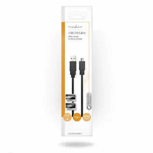 Nedis USB kaapeli | USB 2.0 | USB-A Uros | USB Micro-B Uros | 480 Mbps | Niklattu | 1.00 m | Litteä | PVC | Musta | Kirjekuori