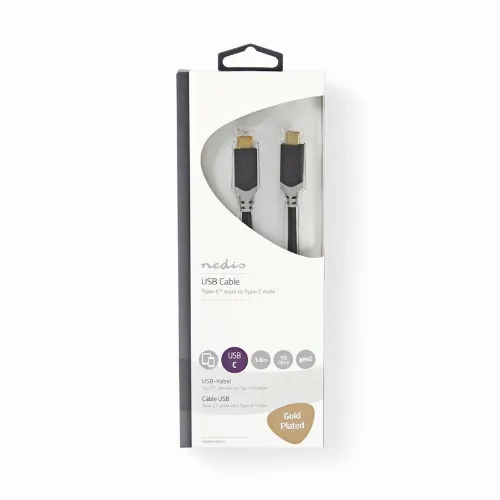 Nedis USB kaapeli | USB 3.2 Gen 2 | USB-C™ Uros | USB-C™ Uros | 100 W | 10 Gbps | Kullattu | 1.00 m | Pyöreä | PVC | Antrasiitti | Ikkunallinen laatikko