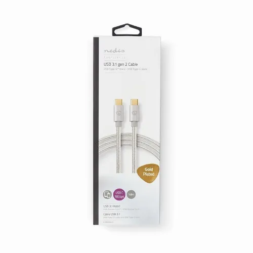 Nedis USB kaapeli | USB 3.2 Gen 2 | USB-C™ Uros | USB-C™ Uros | 100 W | 4K@60Hz | 10 Gbps | Kullattu | 1.00 m | Pyöreä | Nailon / Punottu | Alumiini | Laatikko kannella ja ikkunalla