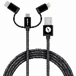 Forever 3in1 nailon microUSB + Lightning + USB type-C Musta