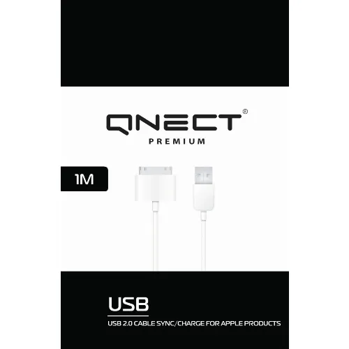 QNECT USB 2.0 tyyppi A uros - 30-nastainen, 1m, valkoinen