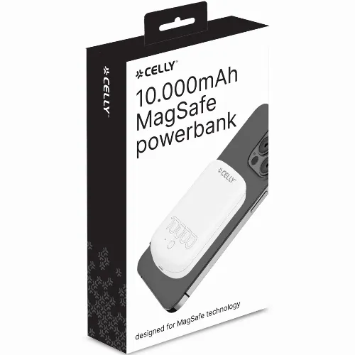 Celly MAGPB10000PRO PowerBank 10W MagSafe Trådlös laddning 10.000mAh Vit