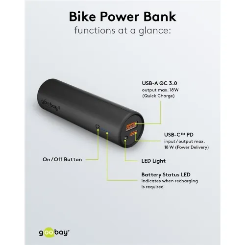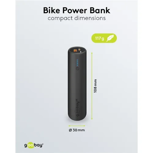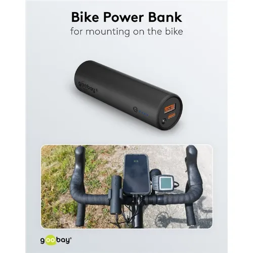 Goobay Bike powerbank 5.0 (5 000 mAh) liten, tunn och praktisk powerbank med en kapacitet på 5.000 mAh för montering på cykeln