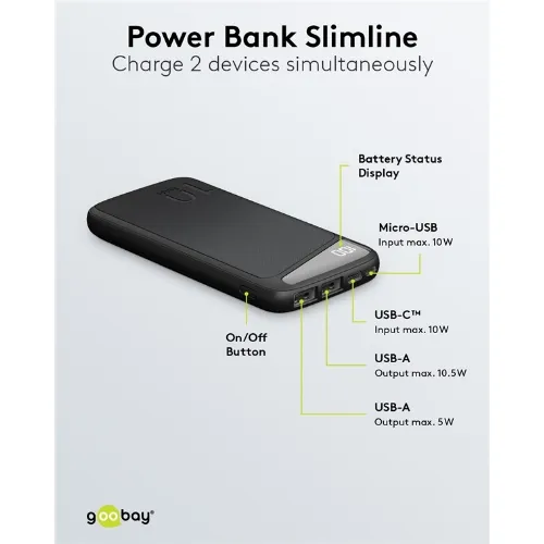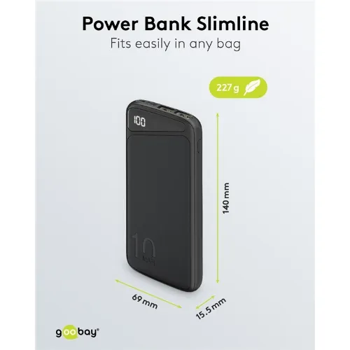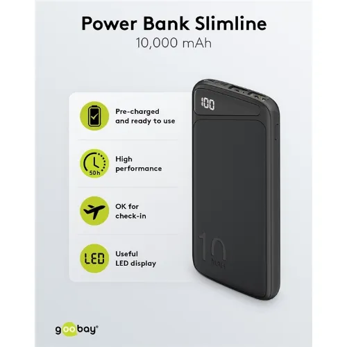 Goobay Powerbank Slimline 10.000 mAh Kraftfulla 10.000 mAh med statusdisplay