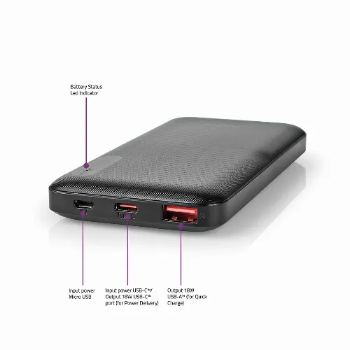 Nedis Virtapankki | 10000 mAh | 1.5 / 2.0 / 3.0 A | Lähtöliitäntöjen määrä: 2 | Lähtöliitäntä: 1x USB-A / 1x USB-C™ | Sisääntulon liitäntä: 1x Micro USB / 1x USB-C™ | PD2.0 18W | Lithium-Polymer