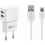Goobay USB-C™ Dual Charging Kit (12 W) Virtalähde, jossa on 2x USB-liitäntää ja 1 m:n USB Type-C™ -kaapeli (valkoinen)