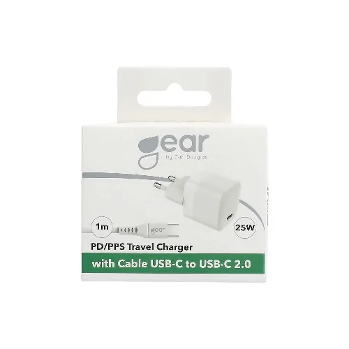 Gear Laturi 220V 1xUSB-C valkoinen PD/PPS 25W kaapeli USB-C–USB-C 3A