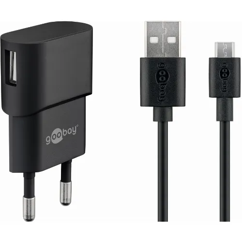 Goobay Micro-USB laddningssats (5 W) Strömförsörjning med Micro-USB-kabel 1 m (svart)
