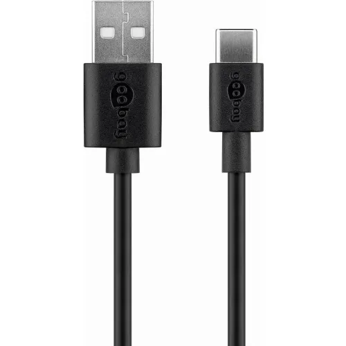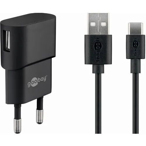Goobay USB-C™ Dual laddningssats (5 W) Strömförsörjning med USB-C™-kabel 1 m (svart)