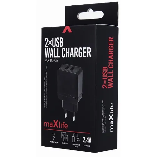 Maxlife USB-pikalaturi, MXTC-02, 2xUSB, pikalataus, musta (2,4 A)
