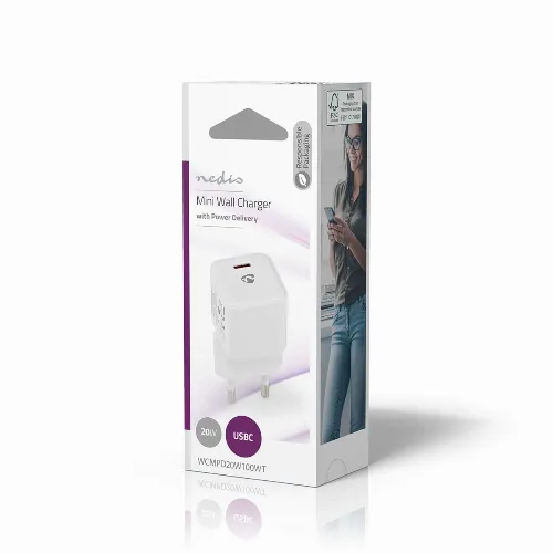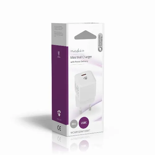 Nedis Seinälaturi | 20 W | PD3.0 20W | 1.67 A / 2.22 A / 3.0 A | Lähtöliitäntöjen määrä: 1 | USB-C™ | Automaattinen Jännitteen Valinta | Valkoinen
