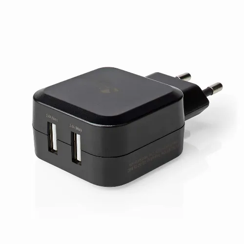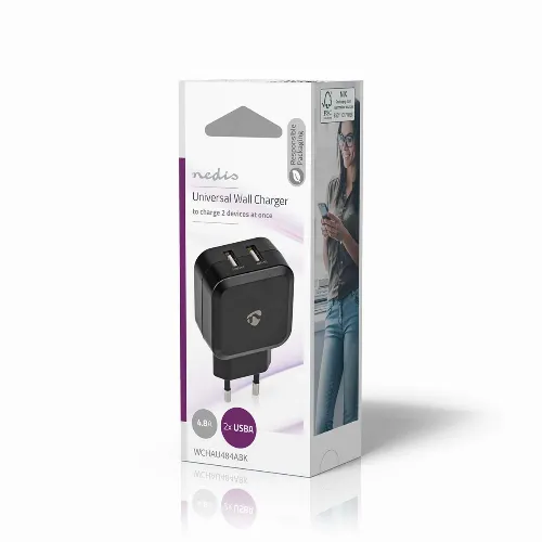 Nedis Seinälaturi | 24 W | 2x 2.4 A A | Lähtöliitäntöjen määrä: 2 | 2x USB-A | Kaapeli ei sisälly | Single Voltage Output | Musta