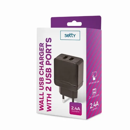 Setty 2 x USB Väggladdare 2.4A, Svart