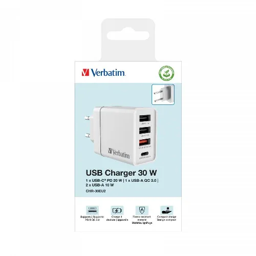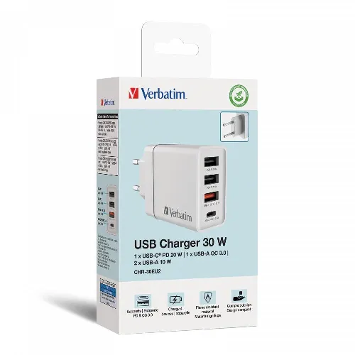 Verbatim CHR-30EU2 USB Charger 30W with 1 x USB-C® PD 20W