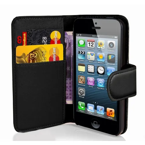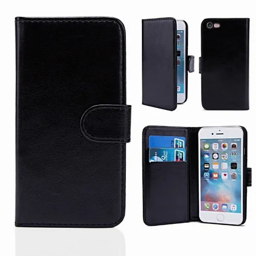 Keinonahkainen lompakkokotelo, 2 korttipaikkaa iPhone 7/8/SE, musta