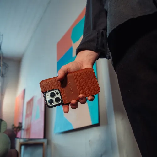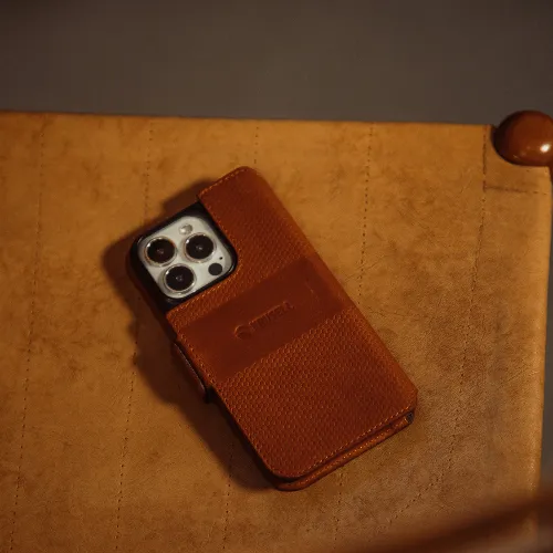 Krusell Nahka Puhelin lompakko iPhone 13 Mini Cognac
