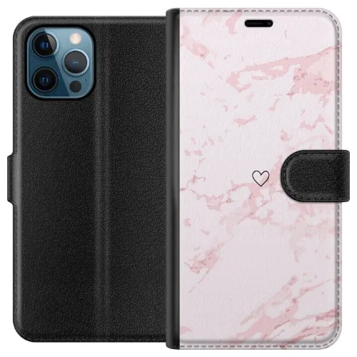 Lompakkokotelo Apple iPhone 12 Pro-laitteelle, jossa on Roosa Sydän kuvio