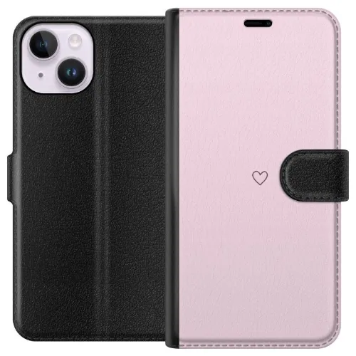 Lompakkokotelo Apple iPhone 14-laitteelle, jossa on Sydän kuvio