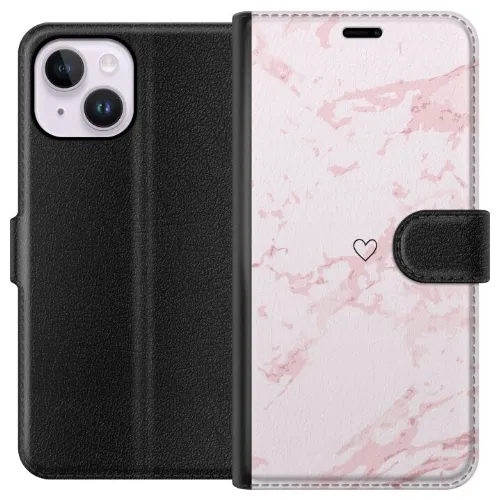 Lompakkokotelo Apple iPhone 15 Plus-laitteelle, jossa on Roosa Sydän kuvio