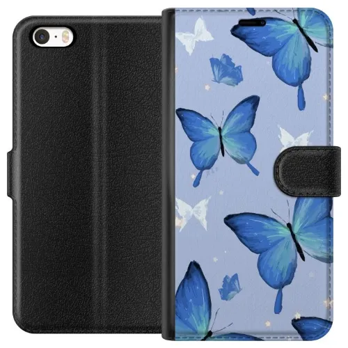 Lompakkokotelo Apple iPhone 5s-laitteelle, jossa on Sinisiä perhosia kuvio