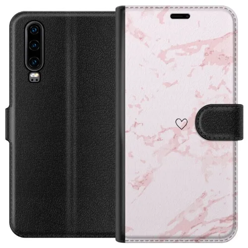 Lompakkokotelo Huawei P30-laitteelle, jossa on Roosa Sydän kuvio