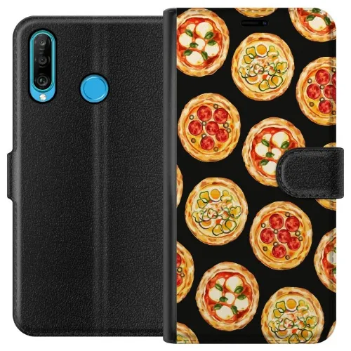 Lompakkokotelo Huawei P30 lite-laitteelle, jossa on Pizza kuvio