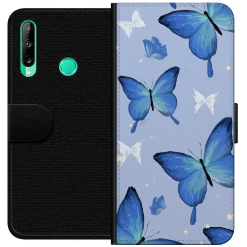 Lompakkokotelo Huawei P40 lite E-laitteelle, jossa on Sinisiä perhosia kuvio