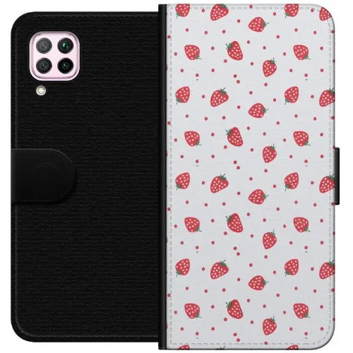 Lompakkokotelo Huawei P40 lite-laitteelle, jossa on Mansikat kuvio