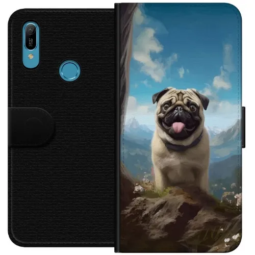 Lompakkokotelo Huawei Y6 (2019)-laitteelle, jossa on Iloinen Koira kuvio