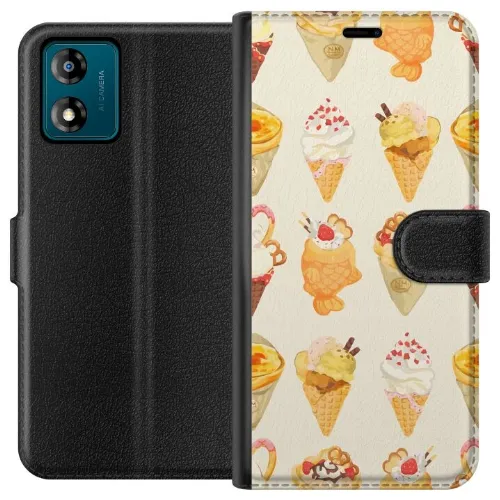 Lompakkokotelo Motorola Moto E13-laitteelle, jossa on Lasinen kuvio