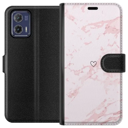 Lompakkokotelo Motorola Moto G73-laitteelle, jossa on Roosa Sydän kuvio