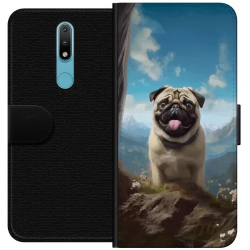 Lompakkokotelo Nokia 2.4-laitteelle, jossa on Iloinen Koira kuvio