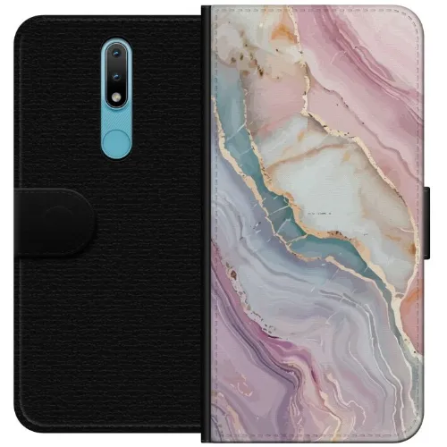 Lompakkokotelo Nokia 2.4-laitteelle, jossa on Marmori kuvio